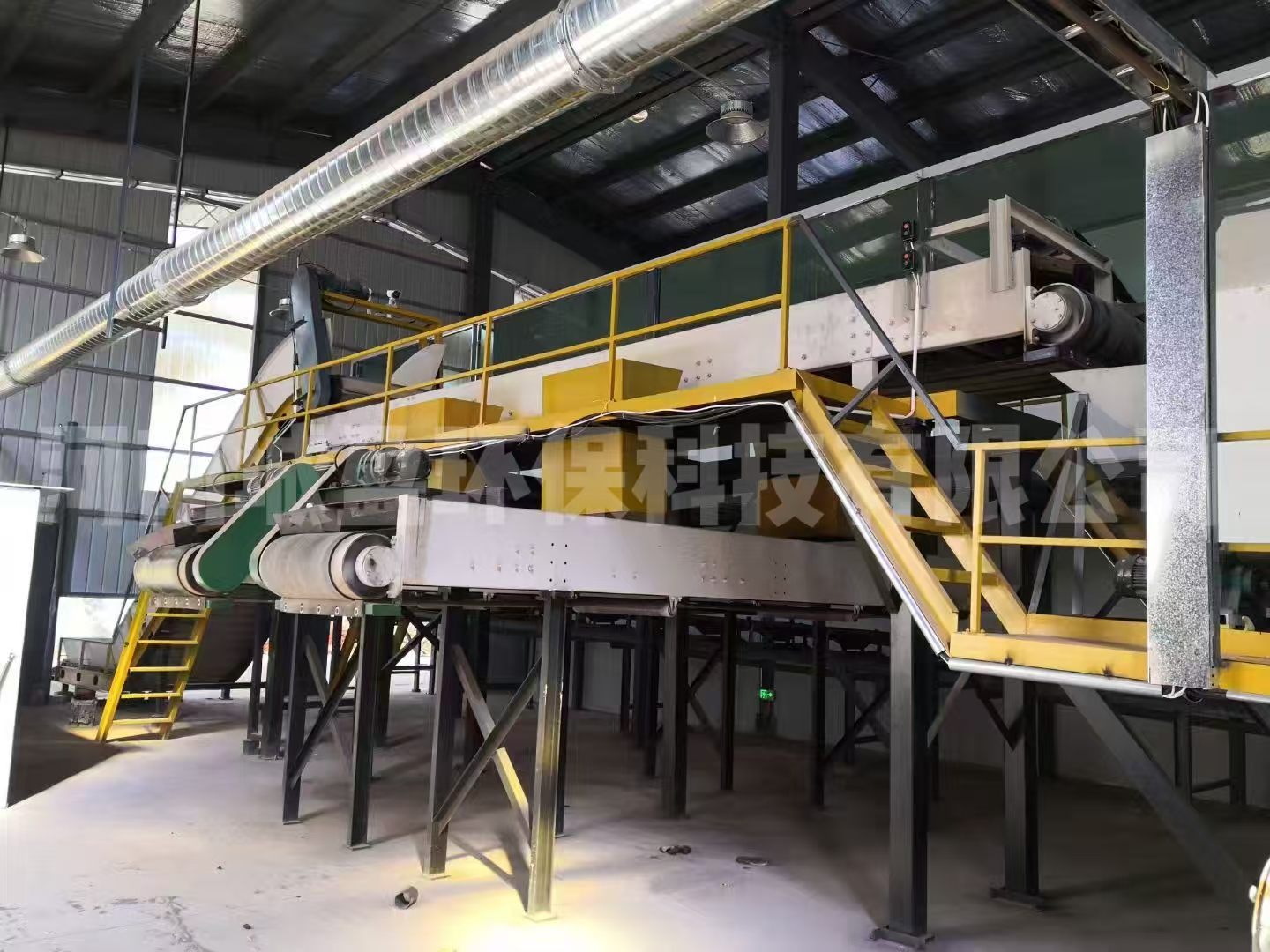 烘干系统利用燃烧废气余热为主要热源。植物秸杆、旧家具、废木材经气化发生器制备的可燃气为备用附助热源。热风经管道引风至烘干机内部,采用导流板推进,扬料打散轴发散的方式,一步步分段烘干。烘干工艺根据垃圾初始含水率分级配置。